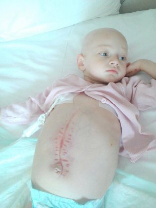 Priveliștea a fost una extrem de jalnică. Sărmănica estea atât de slăbită și trece prin atâta chin! Dar față de cum am văzut-o la Chișinău, ea arată mult mai bine! În sfârșit tumoarea a dat semne că se micșorează, aceasta inițial fiind enormă - de 70 de cm! Acum e 54 cm. Fetița pentru prima dată după câteva luni a stat așezată singurică, fiind că până acum stătea doar culcată. Dragii noștri, avem 11.000$ pe site-ul www.caritate.md și vă mulțumesc din suflet!!!!