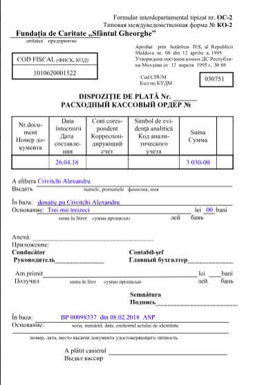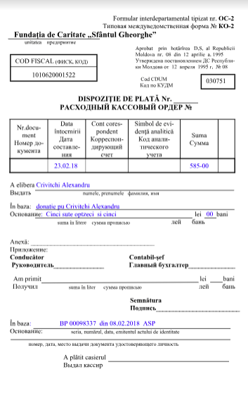 La data de 22 octombrie 2017 am fost internat în Spitalul de Ftiziopneumologie din Chișinău cu diagnosticul de „Tuberculoză Pulmonară Bilaterală”. Boala mi-a afectat ambii plămâni. Calvarul pentru mine a început în clipa în care am aflat diagnosticul şi de atunci încerc să mă descurc de unul singur. Acum stau în chirie în capitală și următoarele 6 sau 8 luni voi continua tratamentul antituberculos și nu pot merge la muncă. Vin cu o rugăminte către oamenii cu sufletul mare: o mână de ajutor pentru mine va fi încă o treaptă spre tratament și o viață sănătoasă. Nu vreau nimic mai mult, vreau doar să fiu sănătos. Vă rog să mă ajutați să pot trăi. Mulțumesc!