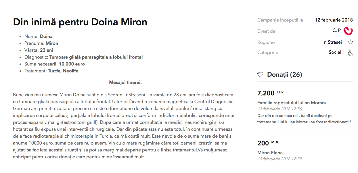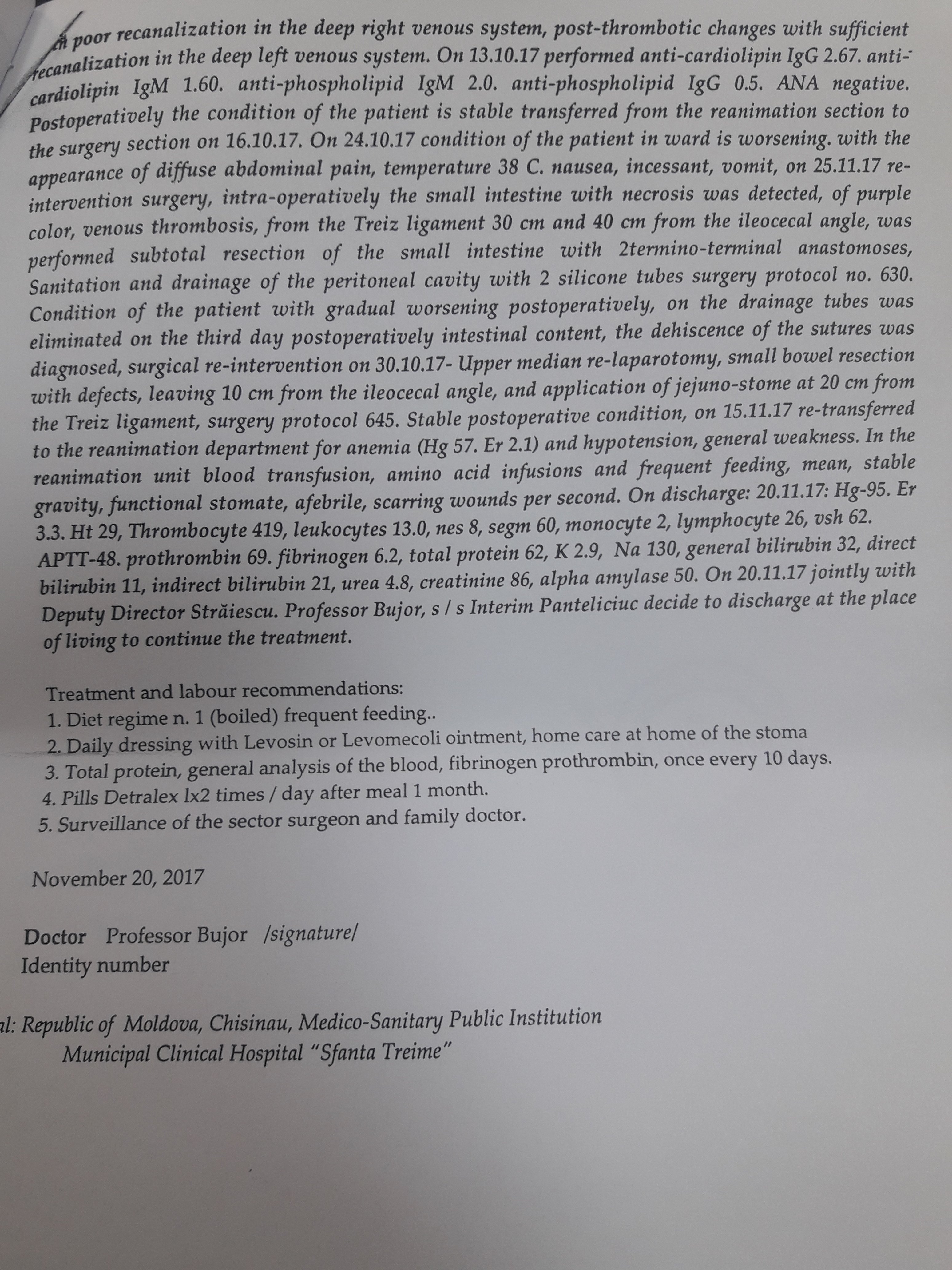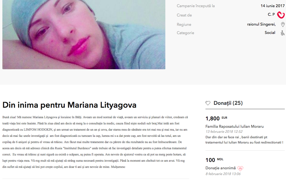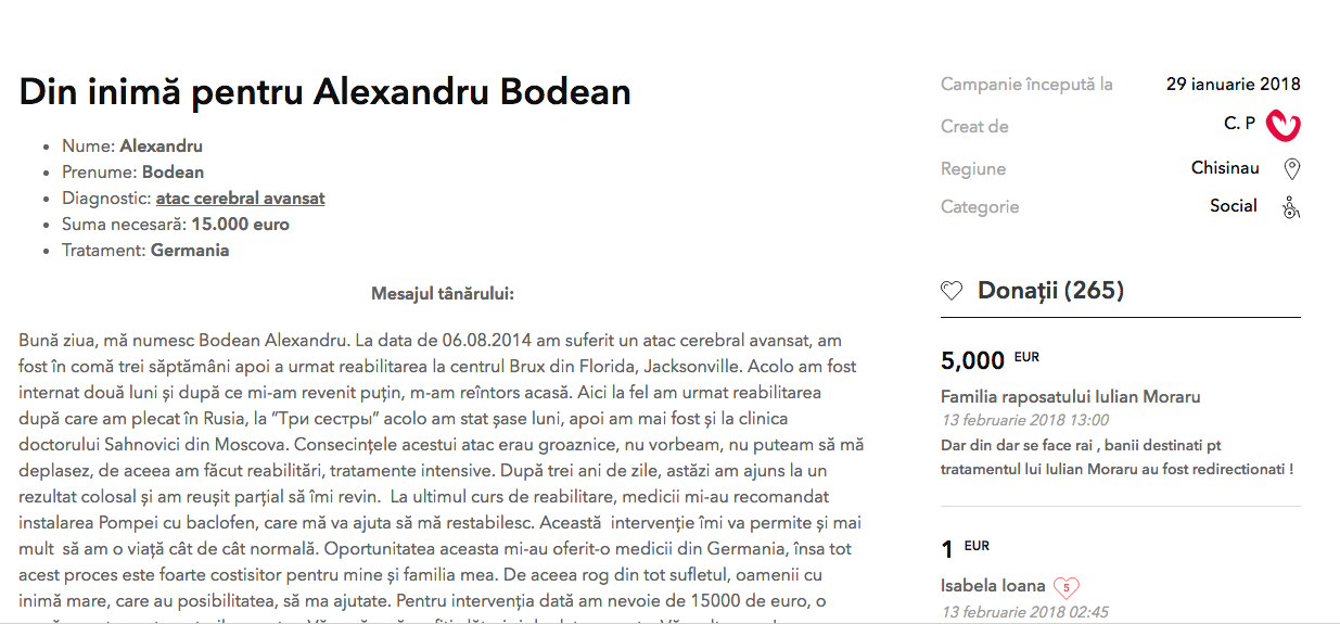 Bună ziua. Mă numesc Ana, locuim în Chișinău, soțul meu se numește Moraru Iulian, are 32 de ani și se află într-o stare foarte gravă la spitalul Sfânta Treime din Chișinău. Iulian are nevoie de transplant de intestin subțire, pe care îl putem face doar peste hotare. Avem foarte puțin timp (4 luni) pentru a acumula suma necesară. Oameni cu suflet mare, vă rog să ne ajutați!!! Sunt sigură că mâna la mâna, vom acumula suma necesară și vom salva încă o viață. Vă rog să nu fiți indiferenți. Cu 2 luni înainte nici nu-mi puteam imagina că așa ceva se va întâmpla în familia noastră. Vă rog din suflet să ne ajutați.