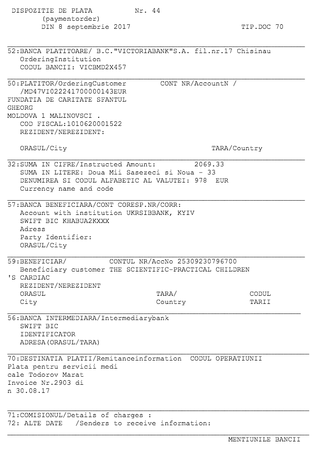 Suntem familia Todorov din raionul Cantemir. In data de 30 iulie s-a nascut cel de-al treilea copilas in familia noastra -Marat Todorov care a fost diagnosticat cu transpozitia vaselor magistrale cardiace. Toti banii pe care i-am putut strange pana acum, ne-au ajuns doar pentru ca copilasul de urgenta sa fie dus la spitalul din Kiev, pentru ca aici in Moldova astfel de operatii nu se fac. Cheltuielile sunt mari pentru familia noastra, este nevoie de operatie, tratament iar noi ca familie simpla nu avem asa bani. Va rugam din toata inima, oameni cu suflete mari sa ne ajutati. Aceasta operatie este unica sansa ca Marat sa fie salvat, este unica sansa pentru viata. Va multumim foarte mult si contam mult sa fiti alaturi de Marat.