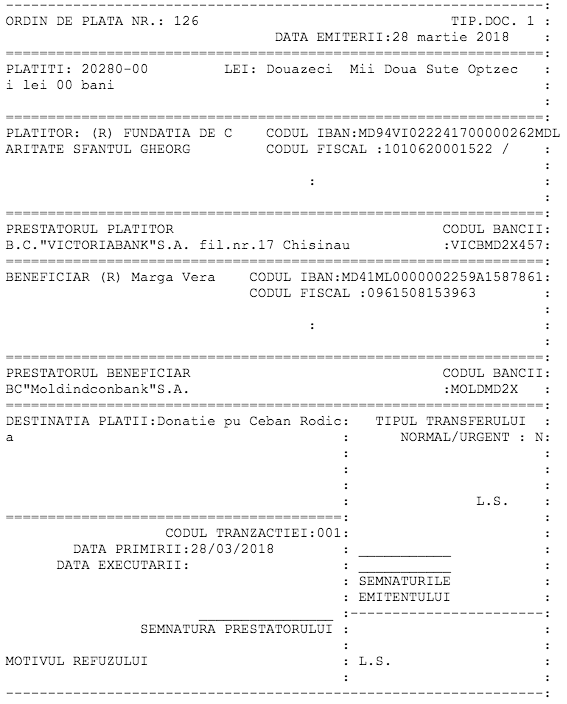 Bună ziua, mă numesc Rodica Ceban din s. Sadaclia r. Basarabeasca. Din păcate, viața m-a pus la grea încercare și anume să trec printr-o perioadă şi boală cruntă- cancerul. Vreau să vă rog pe toți oamenii de Bună Credință și vin cu cea mai mare rugăminte din viața mea, ajutați-mă să scap din chinul şi durerea prin care trec, vă rog ajutați-mă să-mi cresc fetițele, că au nevoie de mine, însă la moment am eu nevoie de ajutorul vostru. Sunt diagnosticată cu cancer la colul uterin, și acum trebuie să plec la investigații pentru a vedea ce tratament voi avea nevoie să trec. Din tot sufletul vă rog să îmi fiți alături.