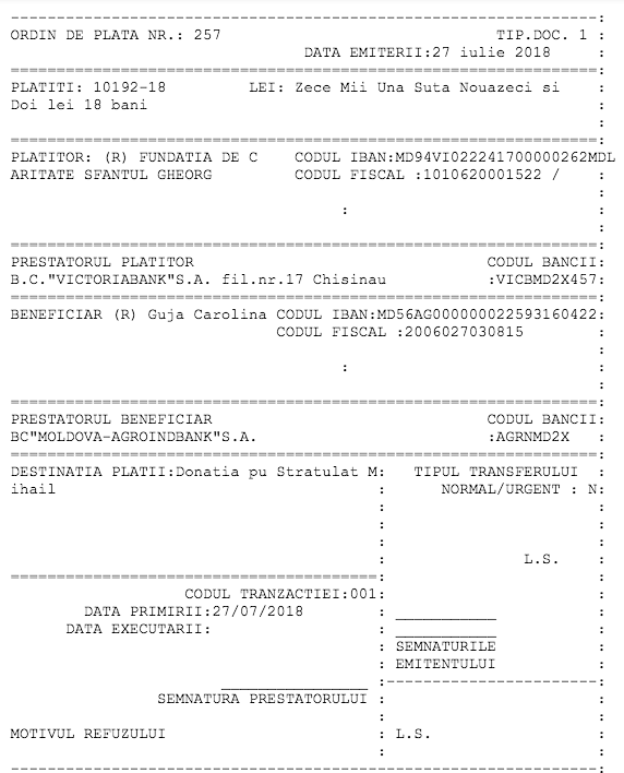 Bună ziua, sunt sora lui Mihail Stratulat, tânărul care a fost găsit zilele trecute într-un lac, fără răsuflare. Fratele cu familia erau plecați în Italia pentru a-și câștiga existența și pentru o viață mai bună. Erau o familie unită și foarte muncitoare, iar în ziua când a aflat că va deveni tătic, s-a întâmplat și tragedia. Nenorocirea a venit pe neprins de veste, toți suntem încă într-o stare de șoc. Mihail avea toată viața înainte, era tânăr, muncitor și cel mai mult își iubea familia. Nici nu ne putem aduna gândurile, părinții nici nu pot vorbi de cele întâmplate pentru că a lăsat o mare durere și suferință. Pentru a-l aduce acasă pe fratele meu avem nevoie de 2700 euro, o sumă de care nu putem face rost într-un timp atât de scurt, de aceea vă rugăm din suflet, oameni de Bună Credință să ne susțineți cu un mic ajutor în aceste momente mult prea dureroase pentru noi.