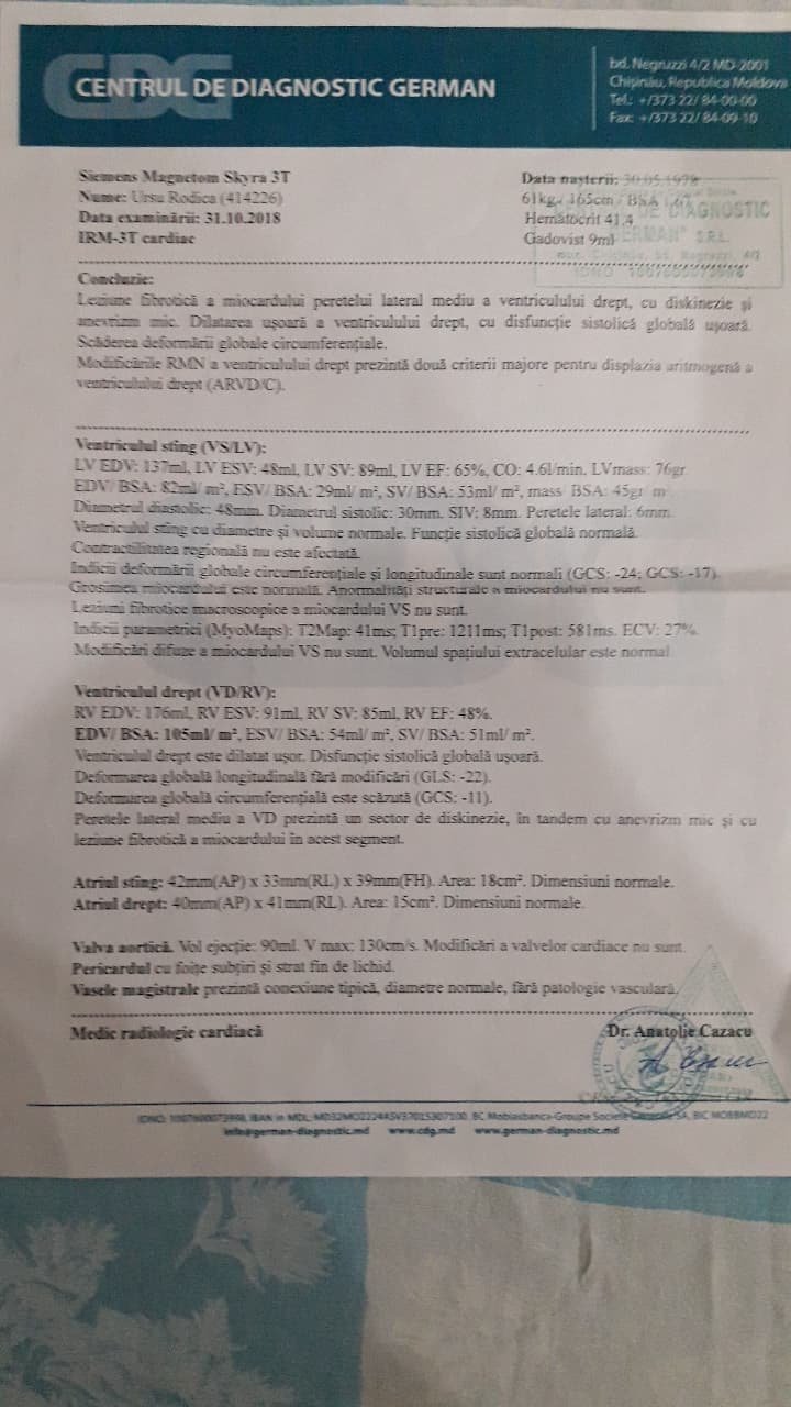 Добрый день! Меня зовут Родика Урсу, мне 40 лет. К сожалению, моя история печальна, и хотя я стараюсь не сдаваться, на данные момент я просто в отчаянии. Диагноз, который так пугает меня – пароксизмальная желудочковая тахикардия – это состояние которое проявляется ускоренным сердцебиением. Болезнь возникла внезапно, в результате стресса и проявилась сердцебиениями, головокружением, слабостью, обмороками. После более тщательного анализа, диагноз был подтвержден, и мне сказали что положение ухудшается, сердцебиения становятся все более частыми и мне необходима срочная операция в Румынии. У меня мало времени, а стоимость операции за пределами возможностей нашей семьи, тем более, что недавно мы купили жилье в ипотеку. Никто не уверен в завтрашнем дне и иногда судьба дает нам испытания, их которых мы не можем выбраться самостоятельно. Хочу попросить всех людей с добрым сердцем помочь мне, потому что только операция на сердце может спасти меня. Вся моя надежда на вас.